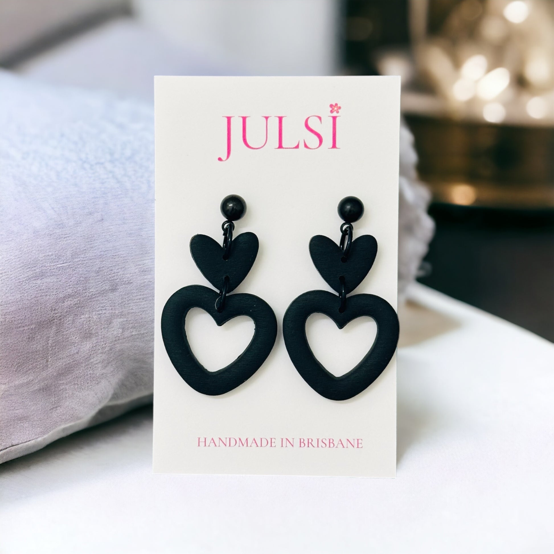 Black Double Heart Earrings