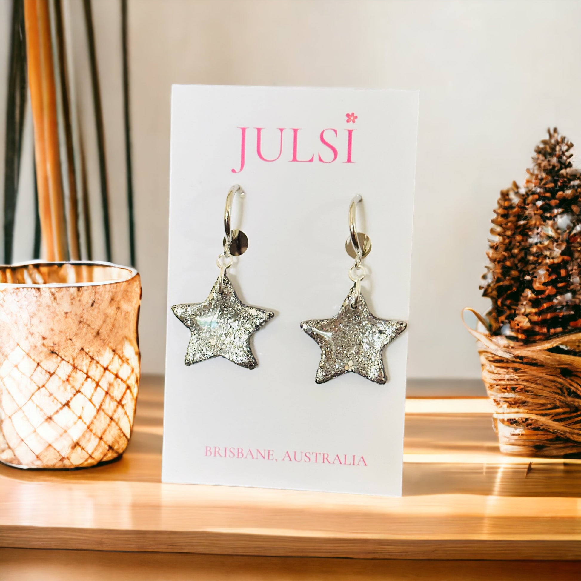 Silver Star Glitter Clip On Earrings
